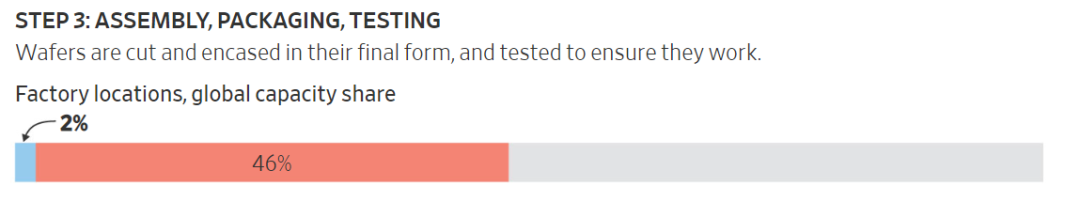 在这个环节,美国以46%对2%的市场份额对中国占据绝对优势。