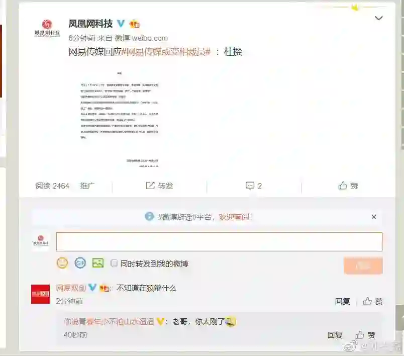 但针对网易新闻客户端的声明,一个名为“网易双创”的官方微博(网易新闻双创频道官方微博)直接开怼:不知道在狡辩什么?