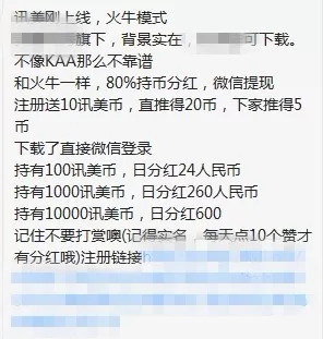 既然是传销币,拉人头这种传销最主要的套路肯定是少不了,与传统传销一样,这些传销币都有自己的会员等级系统,通过发展下线可以提升自己的等级,以获取虚拟币奖励、矿机奖励、矿机算力提高、持币生息利率等各类奖励,下线又会去发展自己的下线,是典型的传销。还有些项目仅仅是对象换成了虚拟币,内容还是些老的套路,比如投资获利,购买原始股返利,商城返利等等。