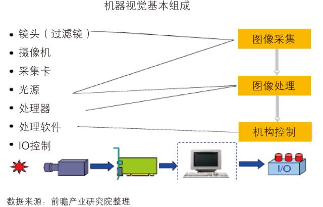 机器视觉用机器代替人眼来做测量和判断,是将图像处理应用于工业自动化领域进行非接触检测、测量,提高加工精度、发现产品缺陷、进行自动分析决策的一项技术,是先进制造业的重要组成部分,发挥着不可替代的作用。目前在欧美发达国家涉及生产加工、品质鉴别的每一条生产线上几乎都有机器视觉系统存在,但在国内,机器视觉发展还刚刚起步,具有巨大的市场潜力。