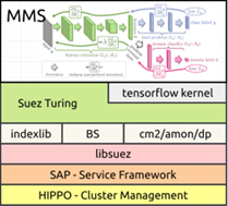 基于阿里平台的Hippo(在线服务调度)、SAP(应用服务框架)等基础设施开发部署。MMS主要是在索引结构、检索控制、执行框架、部署等方面做了系统设计和选型。