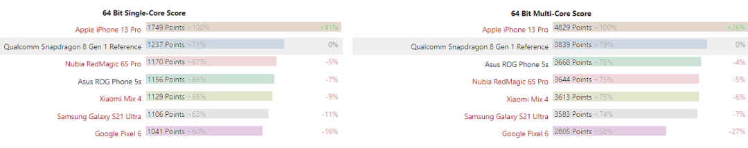 iPhone 里的那颗苹果芯片,一直是安卓旗舰难以匹敌的存在。iPhone 13 系列的发布会上,一位苹果高管甚至放话,友商们还在苦苦追赶苹果两年前的芯片。数据证实,她还真的没有吹牛。