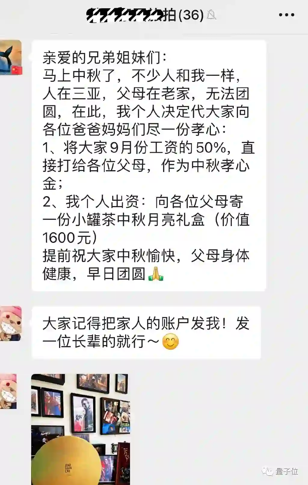 据点石新闻消息,三亚00后老板推出“代尽孝”服务,“代扣”员工工资50%打入父母账户,同时由老板买单给每位员工父母赠送中秋礼盒。