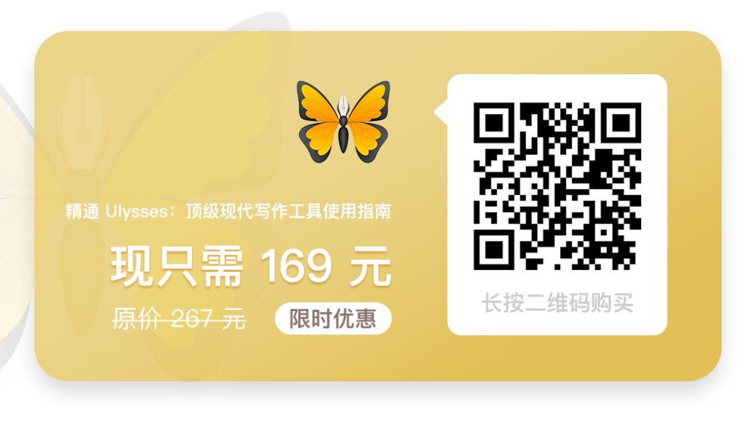 《精通 Ulysses:顶级现代写作工具使用指南》新手版是少数派联合 Ulysses 官方团队专门为少数派读者带来的特殊福利。