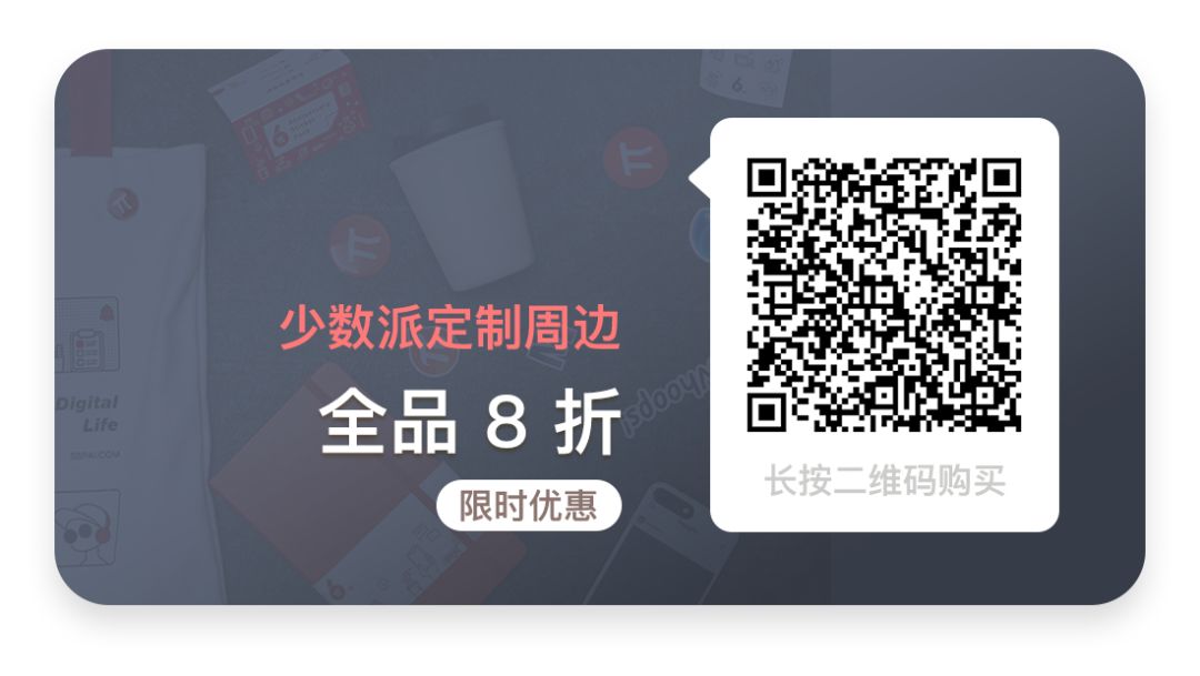 在今年 3.14 少数派度过第六个 π Day 时,定制了一系列全新的周边产品,希望让少数派的品牌和内涵变成一种生活符号,同时也能从另一个角度为你的高品质生活提供一些帮助。