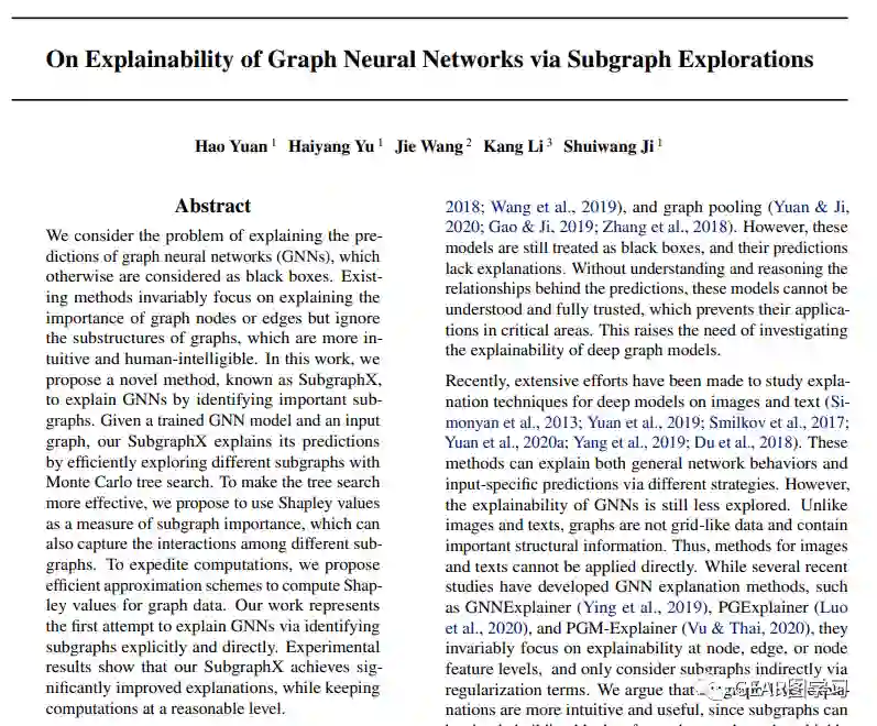 可解释性是人工智能的一个关键部分,因为它可以实现可靠和可信的预测。深度学习模型由于其“黑箱”特性被人广为诟病,并进一步阻碍了其应用。近年来,深度学习模型的可解释性研究在图像和文本领域取得了显著进展。然而,由于图结构的不规则性,将现有的解释方法应用于图神经网络存在着巨大的挑战。尽管如此,图神经网络的可解释性是目前比较值得探索的方向之一。