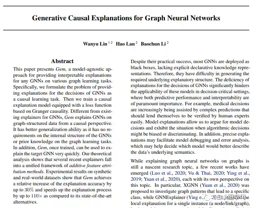 国际机器学习大会( International Conference on Machine Learning, ICML)是由国际机器学习学会(IMLS)主办的年度机器学习国际顶级会议,今年论文接收率为21.48%。今天为大家带来ICML 2021四篇关于图神经网络可解释性的文章以及两篇关于图神经网络扩展性的文章分享。