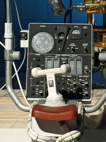 不过这也要结合人体工学设计。阿波罗 15-17 任务的太空服被重新设计,腰部可以弯曲,让宇航员可以坐在月球车上,也可以弯腰跪下细致采集月球样本。不过宇航服终究是笨重,枪式直把手柄需要用手腕的运动实现控制,但其实加压、厚重的宇航服让宇航员需要很大的腕力实现加速和制动所需的细微动作,宇航员约翰∙杨(John Young)和查理∙杜克(Charlie Duke)在测试中抱怨手腕很累,只能坚持两三分钟。