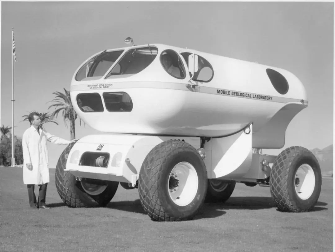 在 1964 年,通用汽车完成移动实验室(MOLAB)方案,该方案为 4X4 轮式加压舱式的设计,提供两周、行驶 400 公里的探索任务。车轮比履带方案更好,因为耗能少,更简单并且对极端温度不敏感等优点,美国地址勘探局在新墨西哥州的沙漠中利用 MOLAB 研究月球探测的勘探程序和设备。