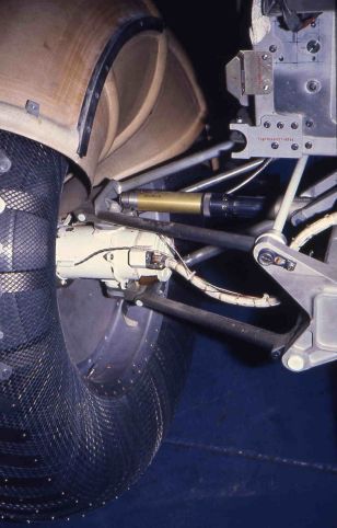 直径为 81.8 厘米,宽度为 22.8 厘米的轮胎内部是一个 2024-T4 铝制轮毂,其外是一个 64.8 厘米直径的缓冲止动框架小「钛金属内胎」,以吸收岩石等大冲撞、保护轮毂,最大可经受 454 公斤的冲击。