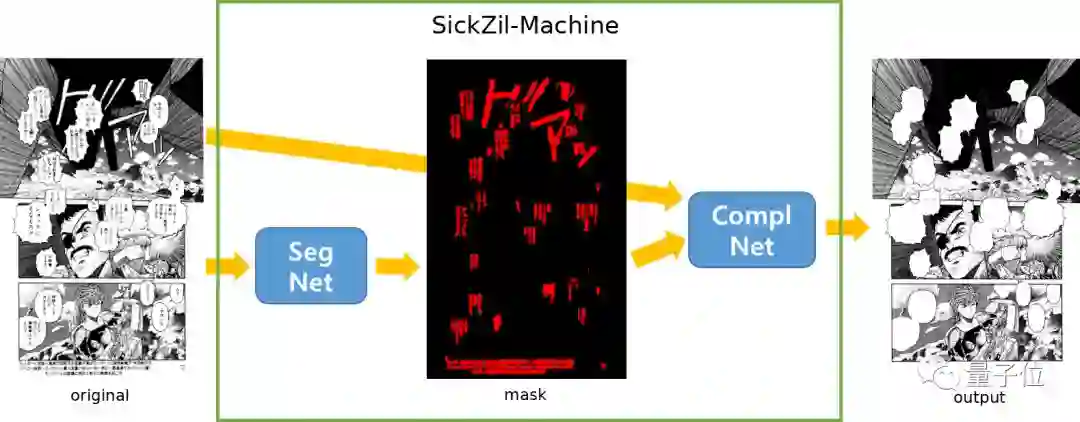分割是用成对数据训练的。这里的成对数据,就是漫画原图,加上文字部分的mask。