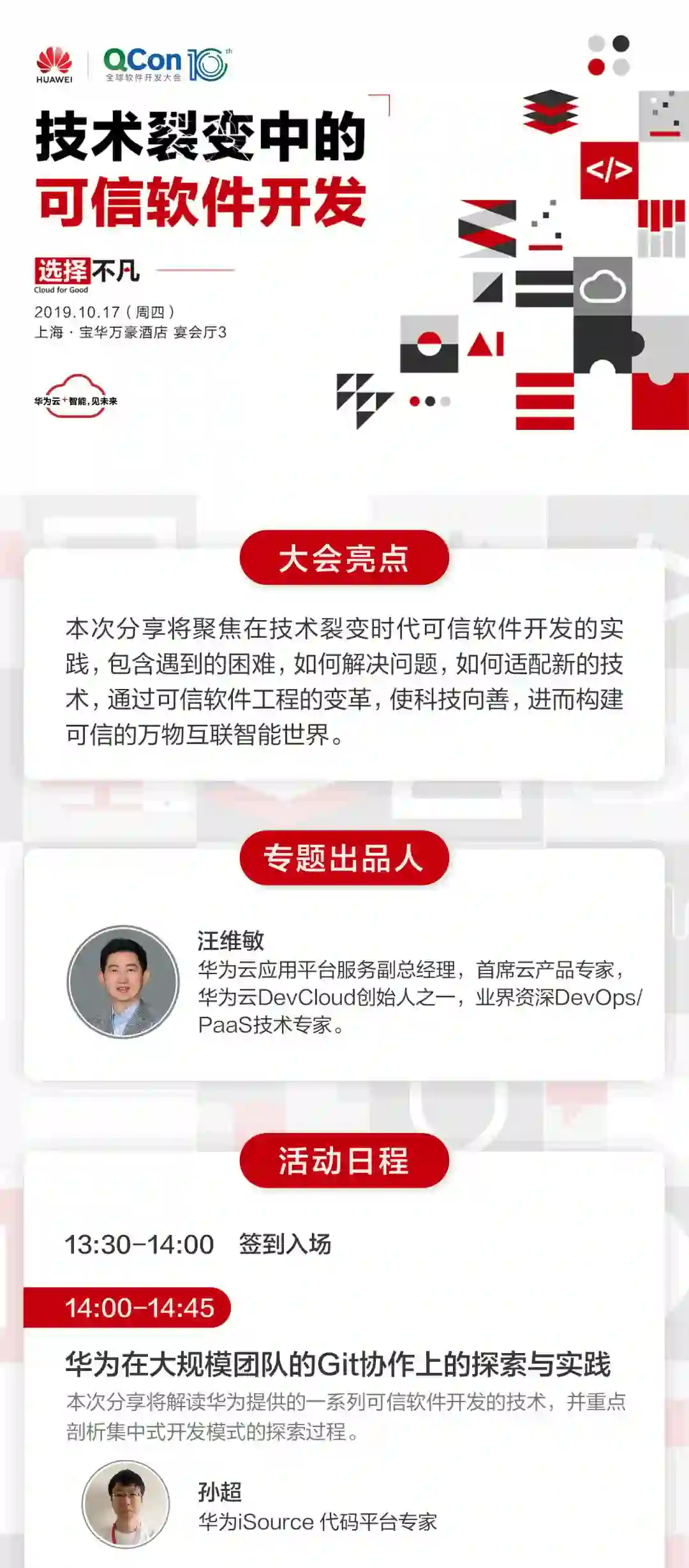你可能想知道,大公司的代码迁移、代码托管难不难?华为踩过哪些坑?解决了哪些技术挑战?2019 年 10 月 17 日下午,QCon 上海华为云「技术裂变中的可信软件开发」专场等你来参加。
