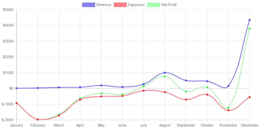 总的来说,我仍然在赔钱,但不要太纠结于这一点。我把收入变成了去年的三倍,达到7.2k美元,并把支出砍掉了一半以上。