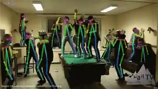 该视频出自2017年的CVPR,Realtime Multi-Person 2D Pose Estimation using Part Affinity Field,是CMU的成果,效果真的Amazing。亮点在于,融合了PCM和PAF的级联cascade形网络结构,网络设计思想和RefineNet的网络设计思想很像,以及相应条件约束的偶匹配(bipartite matchings)算法。