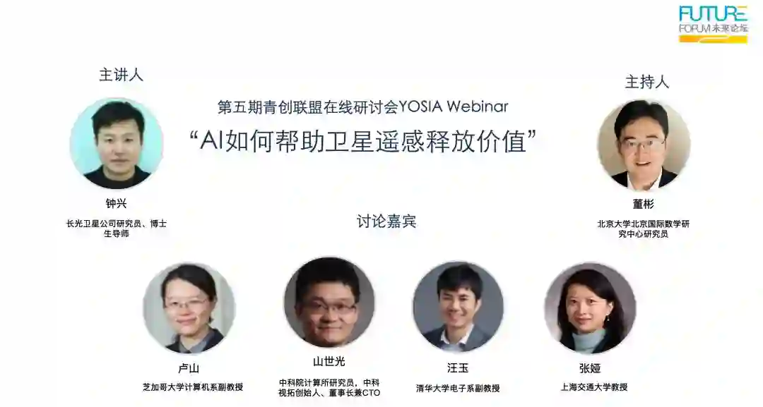 以“AI如何帮助卫星遥感释放价值”为题,钟兴老师分享了他的研究心得并与山世光、卢山、张娅、汪玉、董彬等多领域专家做了跨学科探讨。下面是本期研讨会的精彩内容: