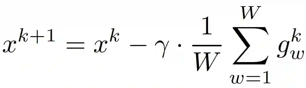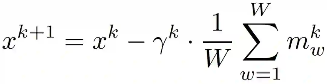在收集到所有工作节点的随机梯度后,主节点更新模型为: