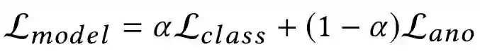 通过添加异常检测项 L_ano 来修改目标(损失)函数: