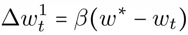 如果在第 t 轮中仅选择了一个攻击者(假定它是客户端 1),则攻击者尝试通过发送后门模型 w* 来替换整个模型: