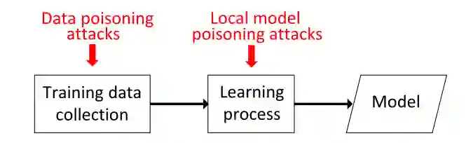 攻击者。攻击模型中的攻击者不控制用于将参与者的更新组合到联合模型中的聚合算法,也不控制合法参与者训练的任何方面。本文假设攻击者通过将联合学习规定的训练算法正确地应用到他们的本地数据中来创建他们的本地模型。这种设置与传统的数据攻击的主要区别在于,数据攻击假定攻击者控制了相当一部分训练数据。相比之下,在模型攻击的联邦学习中,攻击者控制了整个训练过程,但只控制了一个或几个参与者。
