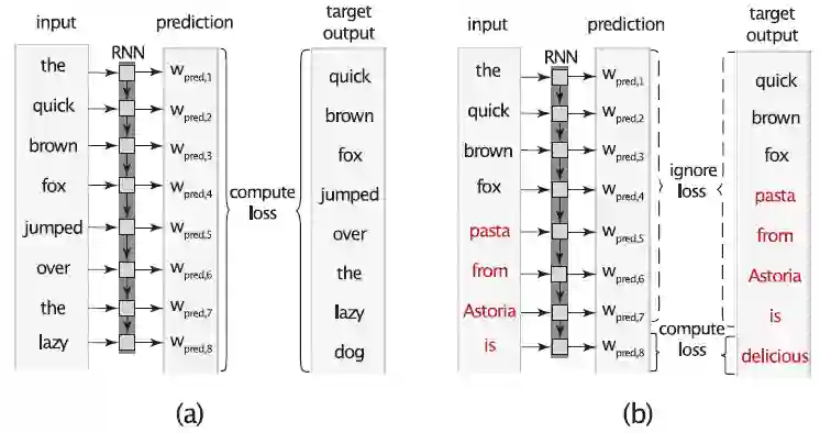 字词预测是非常适合联邦学习的任务,因为训练数据(例如,用户在手机上键入的内容)无法进行集中式收集。它也是 NLP 任务(例如问题解答,翻译和摘要)的代理。使用 PyTorch 单词预测示例代码,该模型是一个 2 层 LSTM,具有 1000 万个参数,该参数在公开 Reddit 数据集中随机选择的一个月(2017 年 11 月)上进行了训练。假设每个 Reddit 用户都是联邦学习的独立参与者,并且要确保每个用户有足够的数据,筛选出少于 150 个或 500 个以上帖子的用户,总共 83,293 名参与者,平均每个人拥有 247 个帖子。将每个帖子视为训练数据中的一句话,将单词限制为数据集中 50K 个最常用单词的字典,每轮随机选择 100 名参与者。攻击者希望模型在用户键入特定句子的开头时预测攻击者选择的单词,如图 2(b)。图 3 给出了单词预测后门的修正损失。其中,图 3(a)为标准单词预测:在每个输出上计算损失;图 3(b)后门单词预测:攻击者用触发语句和选择的最后一个单词替换输入序列的后缀。损失仅在最后一个单词上计算。