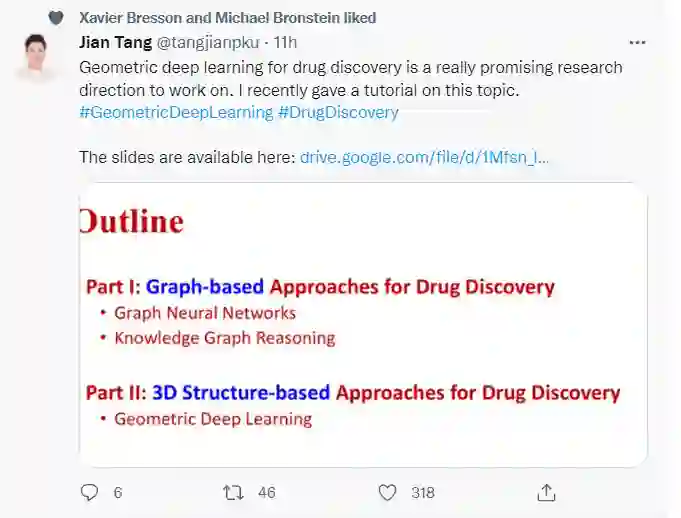 后台回复“GDLD” 就可以获取《【MILA-唐建】几何深度学习药物发现,87页ppt,附视频与PPT》专知下载链接