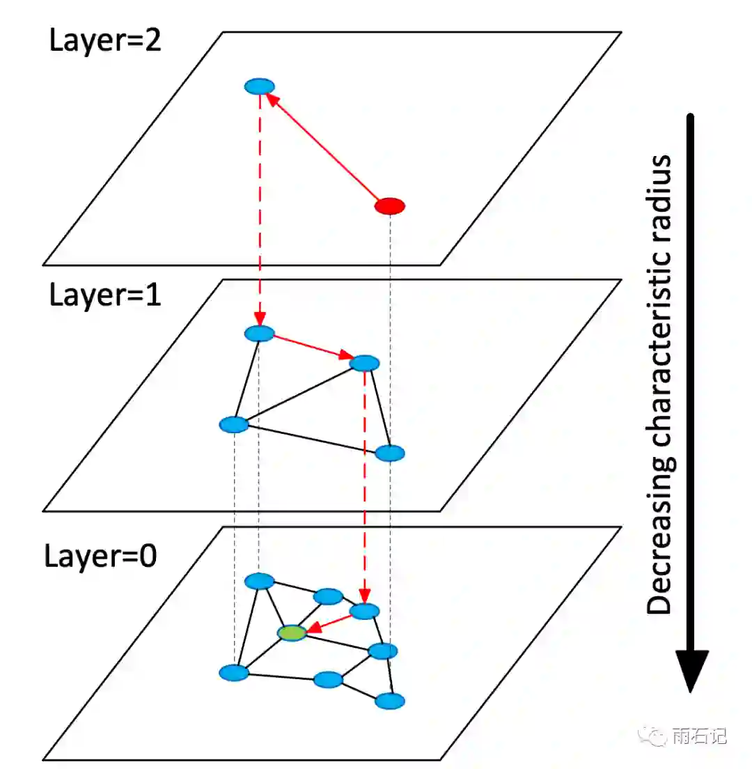 根据距离的大小,在不同的距离范围内构建多层德劳内图,这样,跨度大的搜索和跨度小的搜索可以分开。破了看天吃饭的壁,输入数据点前也不用shuffle了。在遍历的时候,先在跨度大的层次上遍历,一定程度后就下沉一层继续遍历,直到最后。