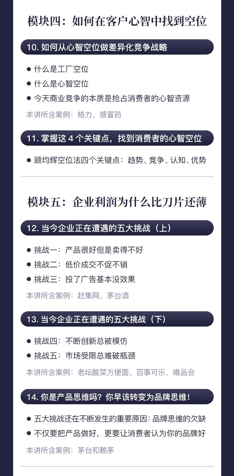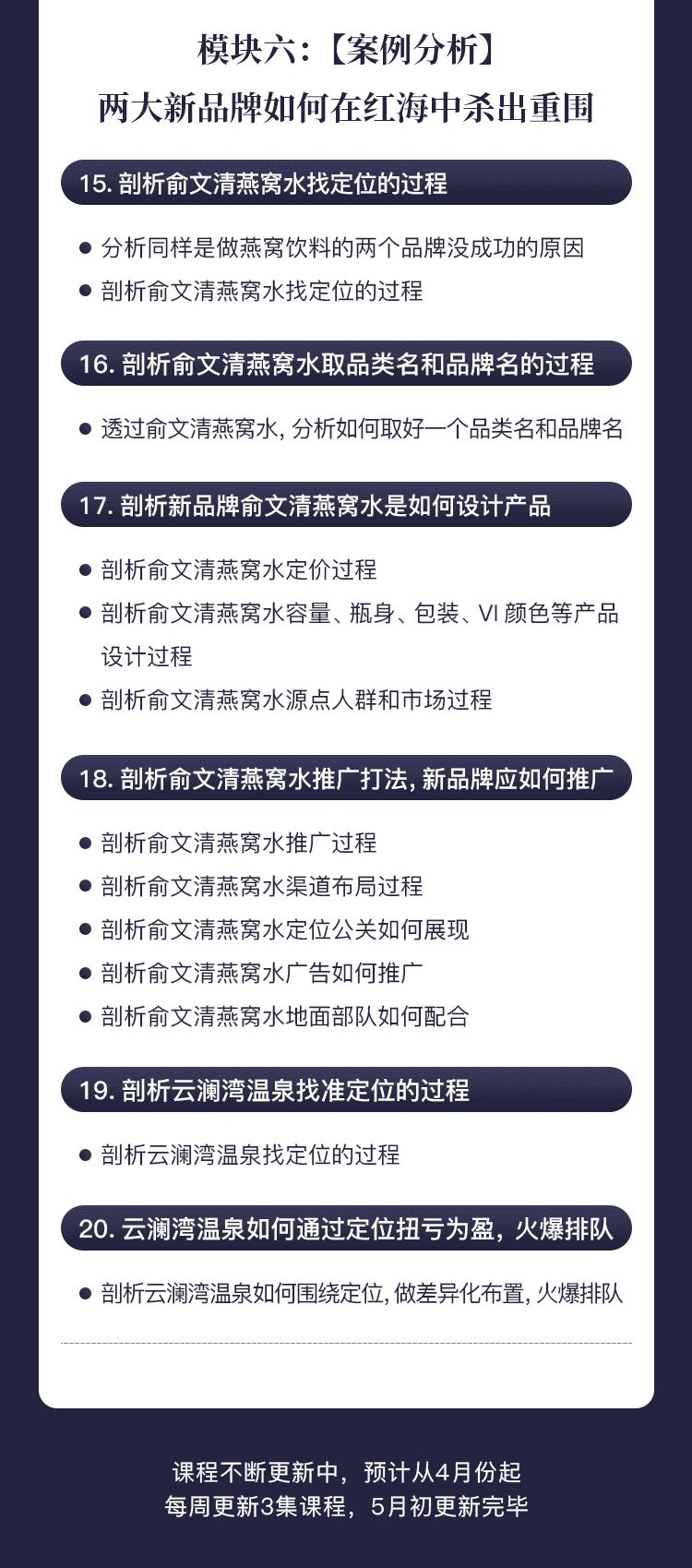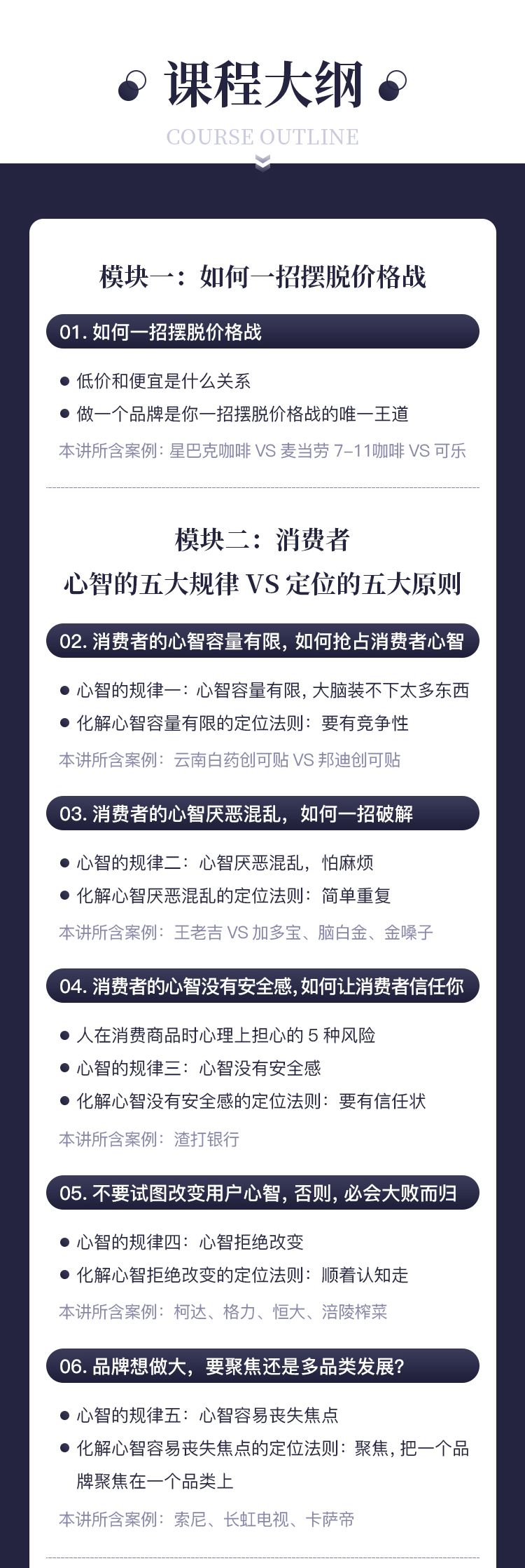 每节课都是定位精华,市场案例分析,解析品牌定位之道。