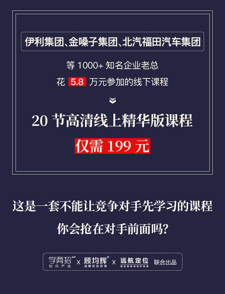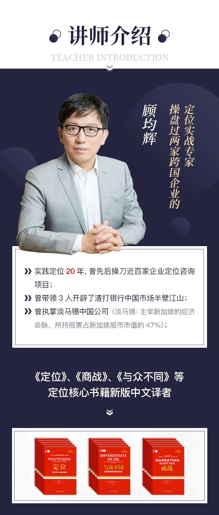 今天创业邦联合国内品牌定位第一人,“定位界”唯一操盘过两家跨国公司、具有国际化视野的定位落地专家,顾均辉老师带来线上品牌定位课。