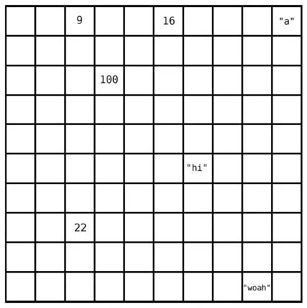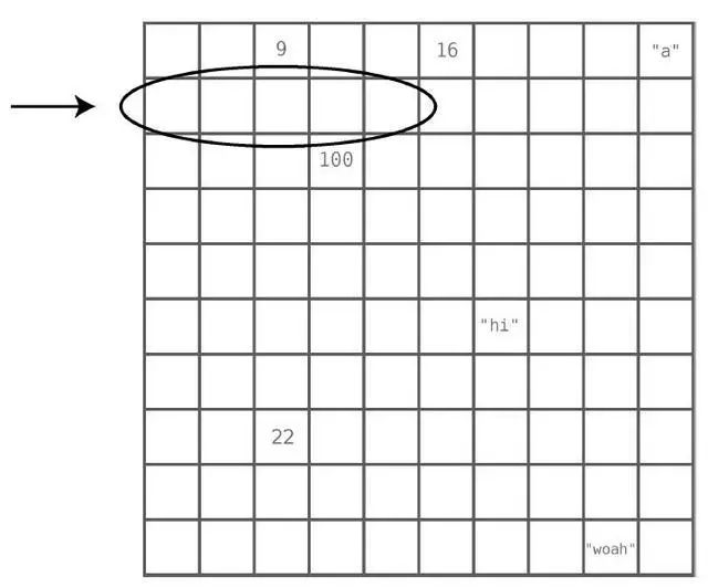 计算机的内存可以被看成一堆格子。下图是一片网格,其中有些格子有数据,有些则是空白。
