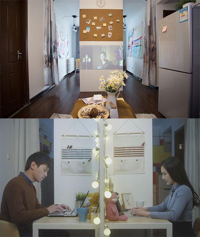 「设计师的重要性就是让产品更人性化」,张燕向新经济100人展示了蛋壳4.0系列「共享一居室」的房屋构造,把公共空间做成了两个面对面的书房,中间用储物柜的整版隔开。在储物柜的另一面,租客可以把储物柜当做投屏的背景,一起看电影,附近有可移动的沙发供租客使用。