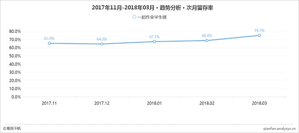 一起作业学生端APP次月留存率