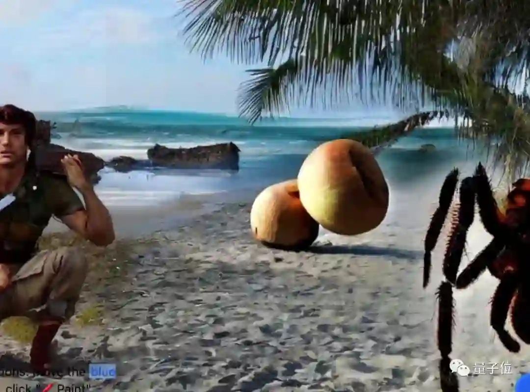 试了一下,我可以删掉自己刚刚画的椰子,也可以把别人画的蜘蛛抹去。系统会帮你把原来的背景还原出来。
