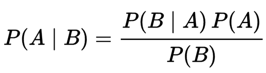 该公式表示在B事件发生的条件下A事件发生的条件概率,等于A事件发生条件下B事件发生的条件概率乘以A事件的概率,再除以B事件发生的概率。公式中,P(A)也叫做先验概率,P(A/B)叫做后验概率。