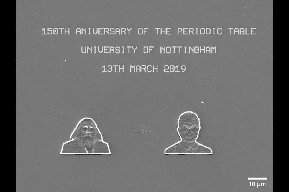 世界上最小的元素周期表有多小?此前这项吉尼斯世界纪录是2010年在诺丁汉大学创造的,而现在同一所大学里又诞生了新的记录。这个新的“最小周期表”刻在硅片上,它只有14微米×7微米那么大。