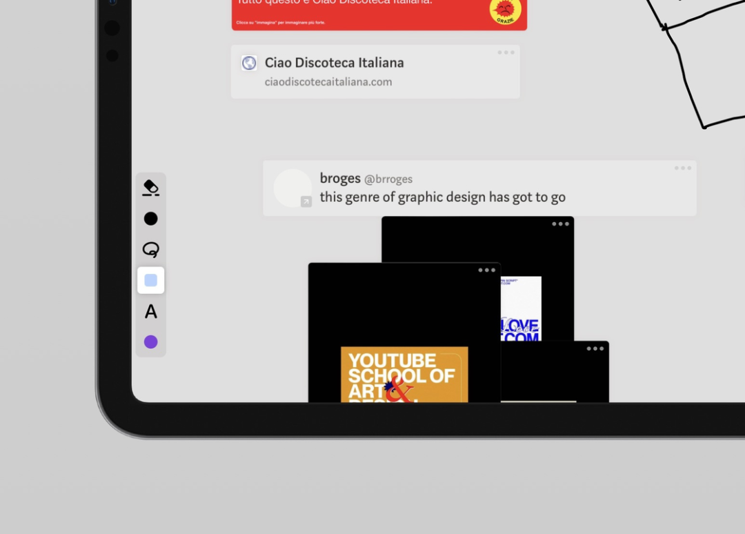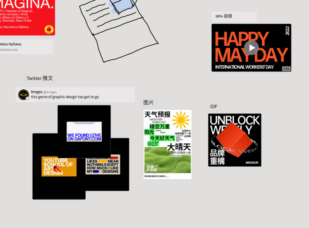 这在创意内容行业一直是一个经久不衰的需求 —— 很长一段时间内,满足这一需求的工具是一块简单的白板,你除了可以直接在上面写写画画,还能将图片等素材打印出来贴在其上。