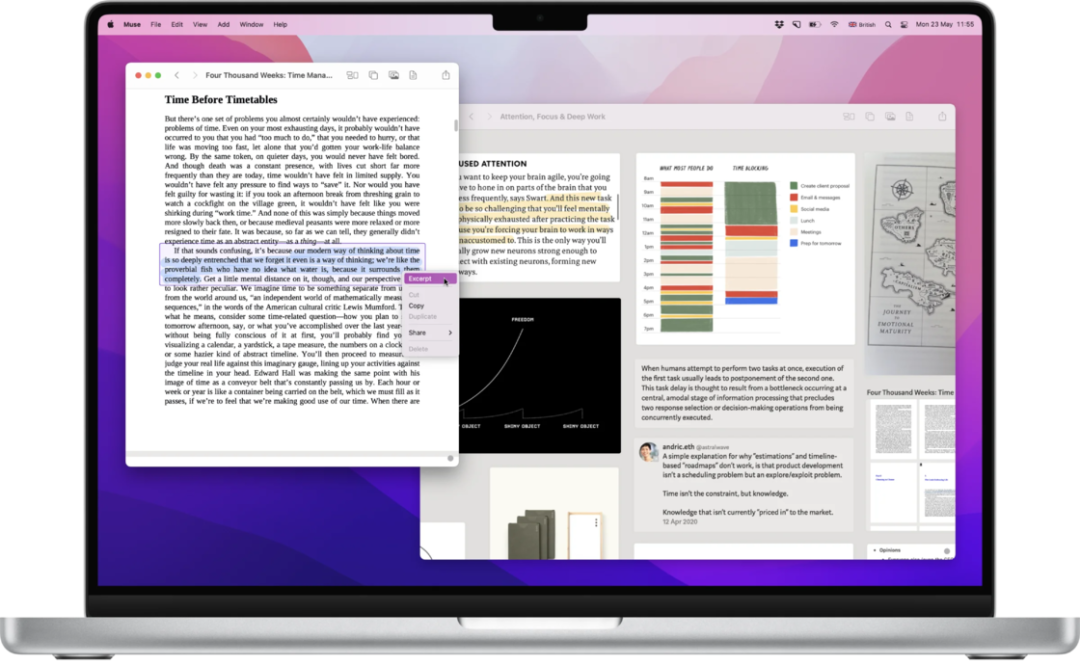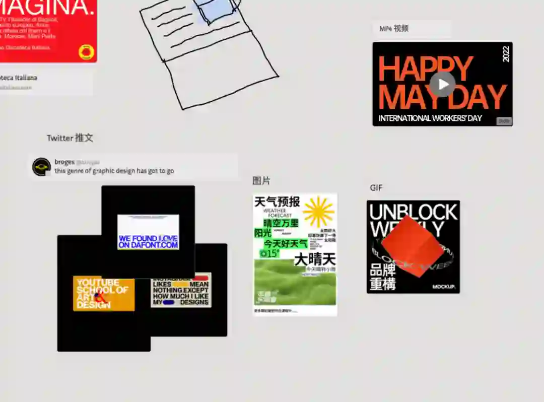 在实际使用中,macOS 端更多时候充当的是一个信息整理的入口:将浏览器中的各种内容直接拖拽进 Muse 中保存并简单整理。搭配目前处于 Beta 测试阶段的 Muse 浏览器插件,也能更快速地批量将网页收纳进 Muse 画板中。