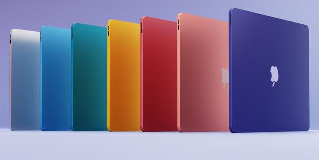 除了 iPhone,Mac 产品也即将迎来全新成员——MacBook Air。苹果在新款 iPad Air、iMac 和 HomePod mini 上面都推出了多种颜色可以选择,如今多色的设计风格也即将来到全新的 MacBook Air 上,和主打性能的 Pro 版本做出区别。