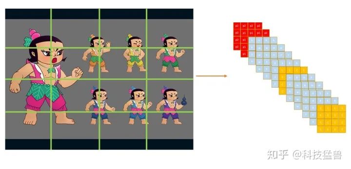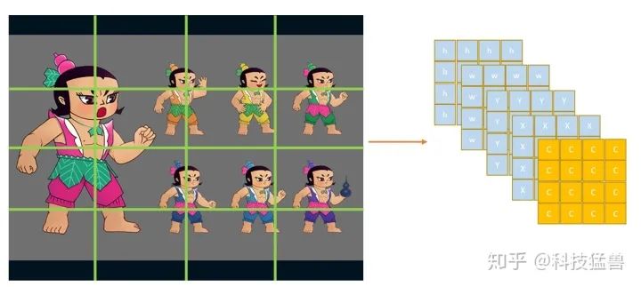 答:看葫芦娃的大娃,他的脸跨了4个区域(grid),但只能某一个grid的c=1,其他的c=0。那么该让哪一个grid的c=1呢?就看他的脸的中心落在了哪个grid里面。根据这一原则,c的真值为下图7所示: