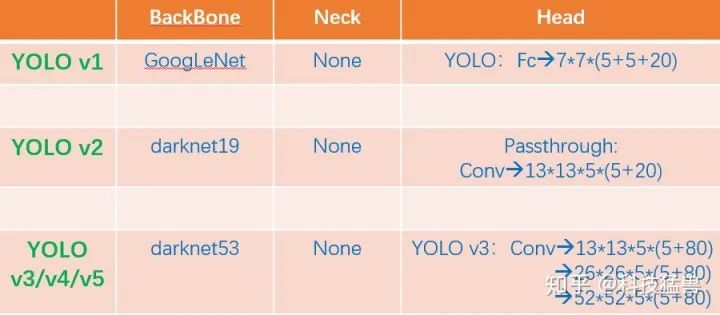 目标检测器模型的结构如下图1所示,之前看过了YOLO v2 v3 v4 v5对于检测头和loss函数的改进,如下图2所示,下面着重介绍backbone的改进: