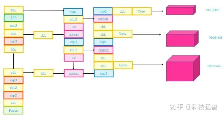 特征融合的方式更加直接,没有YOLO v2的passthrough操作,直接上采样之后concat在一起。