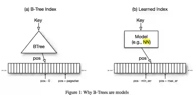 在这篇探索性研究论文中,我们从这个前提出发,假设所有现有的索引结构都可以用其他类型的模型来代替,包括深度学习模型,也即文中所谓的“机器学习索引”(learned indexes)。