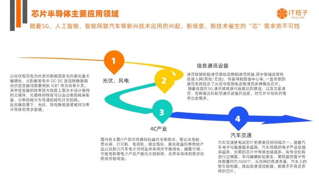 汽车交通是电源芯片的重要应用领域之一。随着汽车电子化程度越来越高,汽车搭载的电子产品也越来越多,所需的芯片半导体也就越多。有专业机构进行过测算,平均每辆新能源车,需搭载搭载半导体数量约为1600个,从应用的角度来看,汽车上的整车控制器、自动驾驶域控制器,都离不开各式各样的芯片。