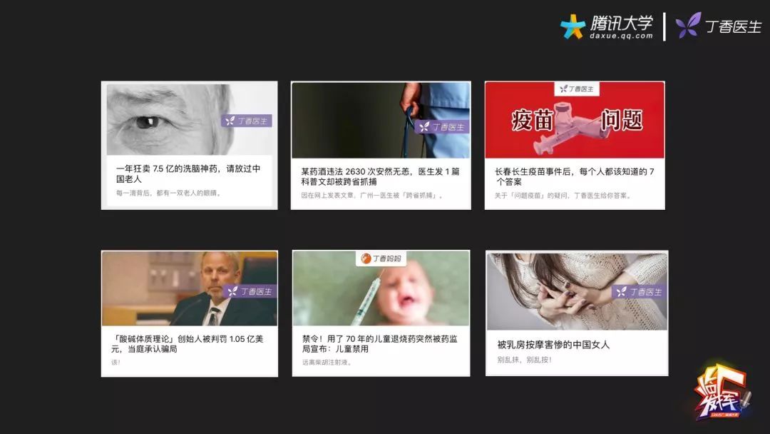 为了确定内容方向,丁香医生一方面基于大数据,统计、分析了最受用户关注的健康话题,另一方面研究了朋友圈、微信群里谣言的主题分布。经过一番调研,丁香医生最终确定了反认知传播的内容生产策略。