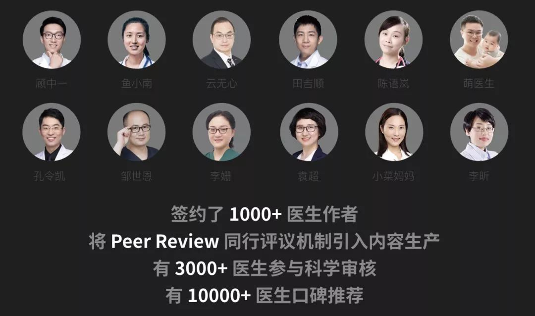除此之外,引入发论文的Peer Review(同行审议)机制,比如一位医生撰稿,需要另外两位医生来审核,这样的一篇科普就有多个专业的信任背书,既解决了信任问题,让实现了医生实名推荐带来的第一波增长。
