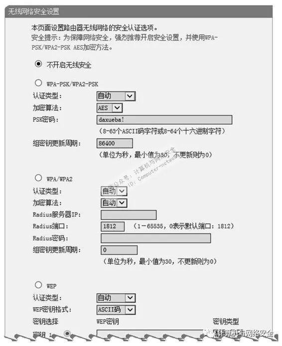 WPA协议就是为了解决WEP加密标准存在的漏洞而产生的,该标准于2003年正式启用。WPA设置最普遍的是WPA-PSK(预共享密钥),而且WPA使用了256位密钥,明显强于WEP标准中使用的64位和128位密钥。