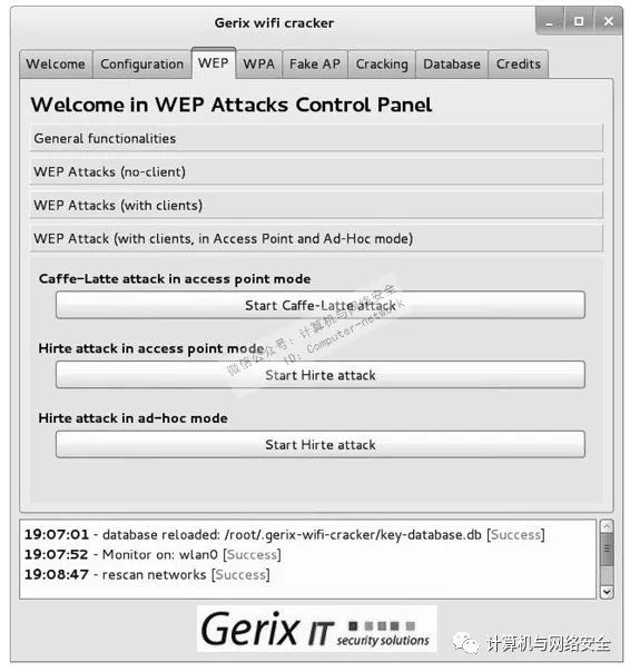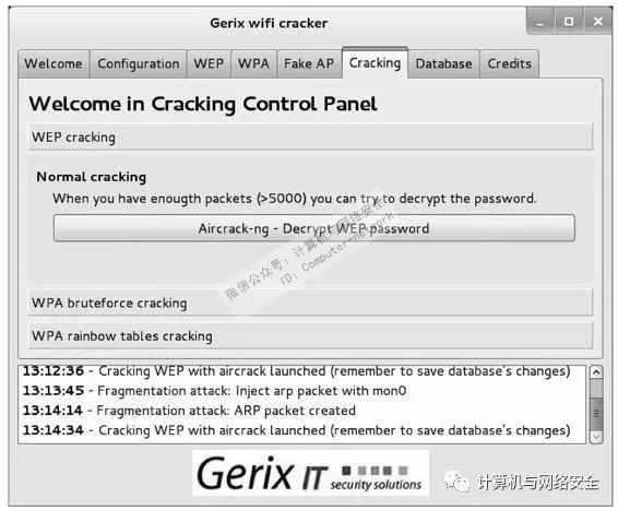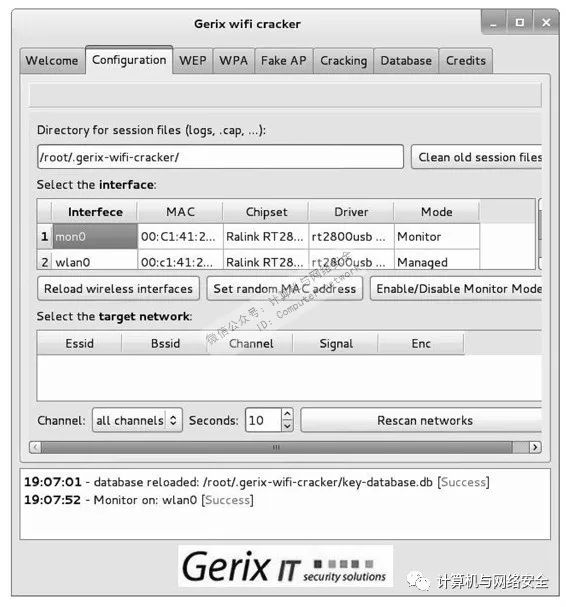 下面介绍使用Gerix工具自动地攻击无线网络。使用Gerix攻击WEP加密的无线网络的具体操作步骤如下所述。