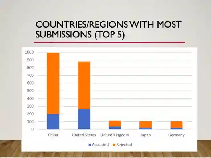 从投稿国家看,中国的已经排名第一,但录用数量差不多少了70篇。