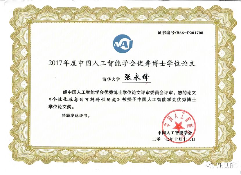 7月15日,张永锋同学获得2017年度中国人工智能学会优秀博士学位论文。