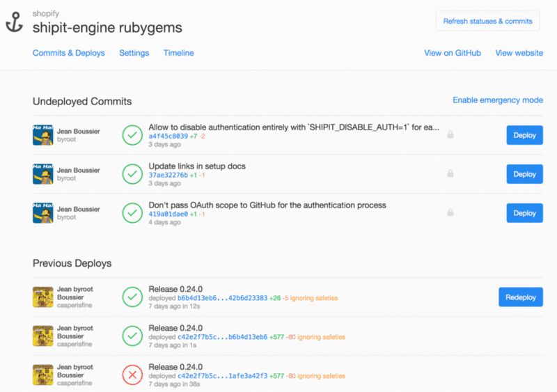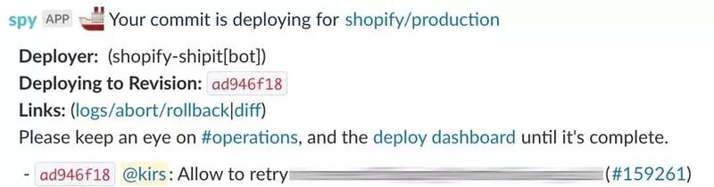 ShipIt 是我们的部署工具,是 Shopify 持续交付的核心。ShipIt 是一个编配器,负责运行和跟踪项目的部署脚本。它支持直接部署到 Rubygems、Pip、Heroku 和 Capistrano。对我们来说,主要是 kubernetes-deploy 或 Capistrano(用于遗留项目)。