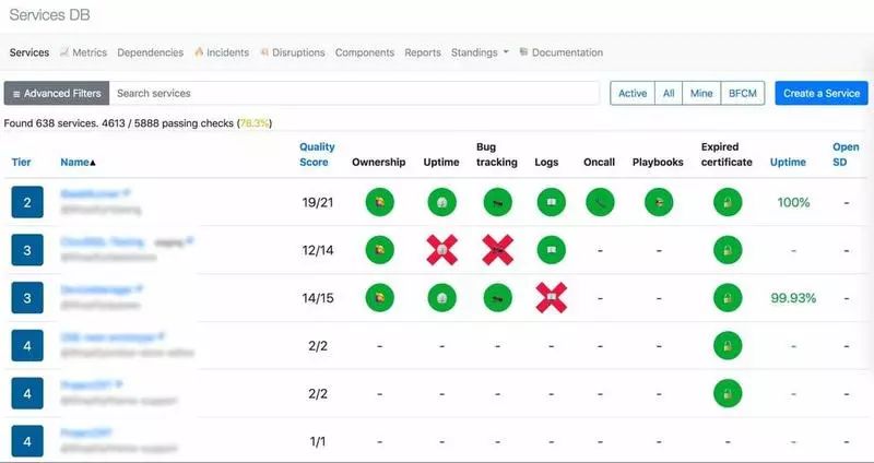 ServicesDB 为每个应用程序维护了一份检查清单:所有权、运行时间、日志、轮班待命、异常报告和 gem 安全更新。如果其中任何一个出现问题,ServicesDB 就会在 GitHub 上提交一个问题,并通知应用程序的所有者来解决问题。我们还可以通过 ServicesDB 了解如下一些问题:“有多少个应用程序使用了 Rails 4.2?有多少个应用程序使用了过时的 gem 版本?哪些应用程序正在调用这个服务?”